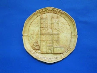 Hiasan dinding dari bahan resin dengan motif timbul (2 dimensi) bangunan Westminster Abbey di London.